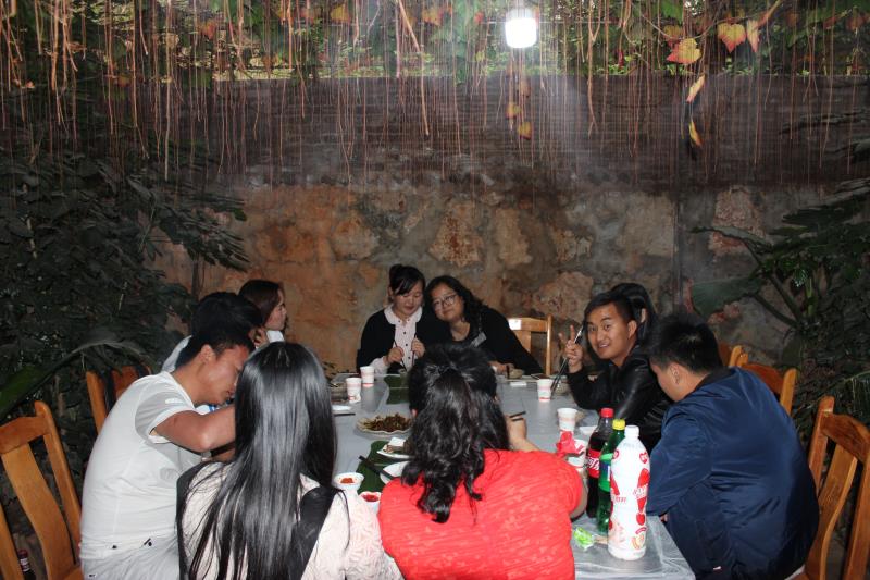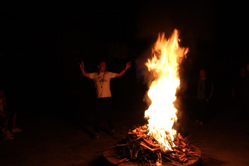 飯后,我們?cè)诶习宓膸ьI(lǐng)下進(jìn)行了篝火晚會(huì),深深的被濃厚的民族氣息所感染,大家載歌載舞,愉快的一天也在篝火下結(jié)束!哦~對(duì)了,告訴你一個(gè)有緣的故事,彝人部落的老板是我們?cè)颇辖彽睦峡蛻?,所以這個(gè)世界,終將會(huì)讓我們相聚!
