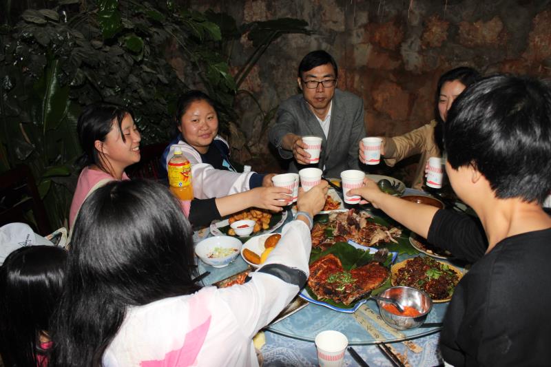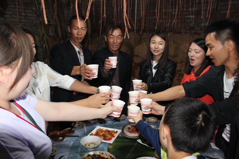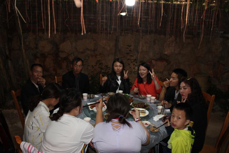 水果采摘之后,晚餐也開始了,他家的菜很有特色,豬是自己家飼養(yǎng)的小香豬,菜是大自然中很少見的野菜,晚餐開始后,大家舉杯共飲!